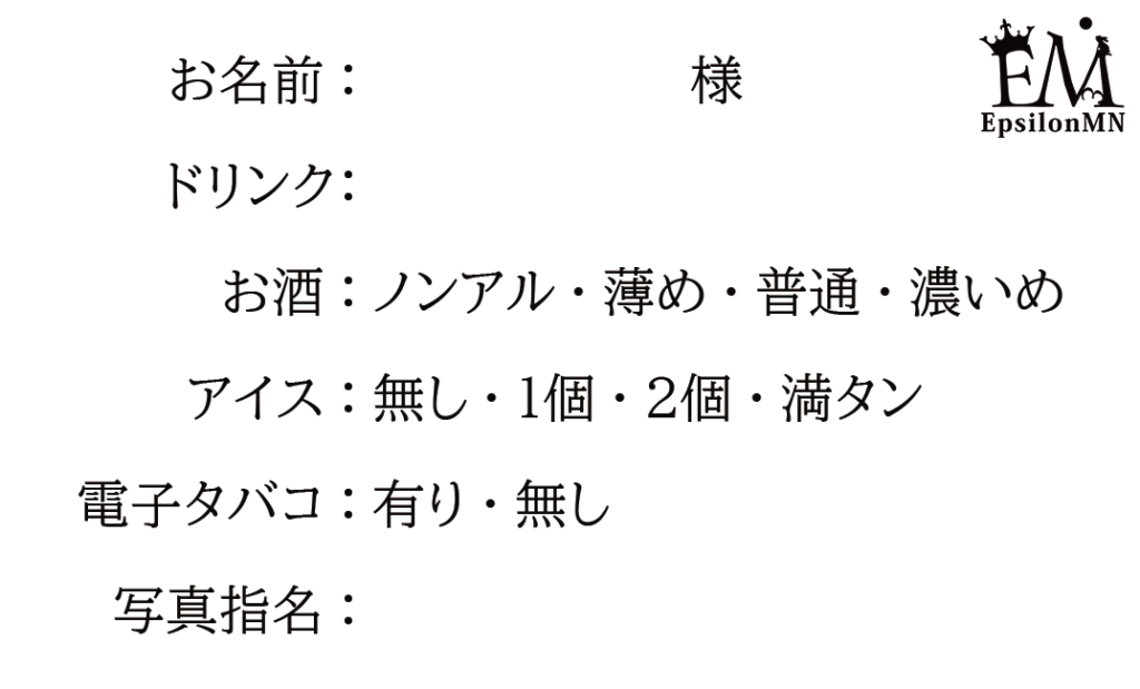 ホストクラブ業務用紙
